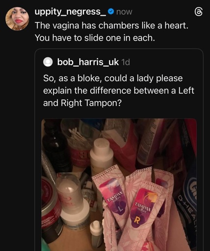 Tampons come in many different types, kind of like quarks. Left, right, up, down, charm, strange… but you need at least a specialization in gynecology to be able to recognize most of them. A left or right tampon will usually be good enough, but might permit a bit of spotting.