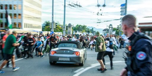 Mehrere Videos davon wurden in den sozialen Medien geteilt. Darauf ist zu sehen, wie das Auto mit Waadtländer Kennzeichen eine weisse Linie überfährt, dann eine Kolonne von Fahrzeugen überholt, die von den auf der Fahrbahn sitzenden Demonstranten blockiert wird, und mit hohem Tempo in die Menge rast, woraufhin die Menschen in Panik versuchen auszuweichen.