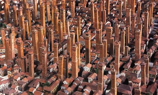I say that because some towers are leaning weirdly, and some windows are very diffused. It’s too low res to be to an “artistic renderin,” and it’s just looks messy (as an image). I’ve seen better renders of the towers of Bologna.