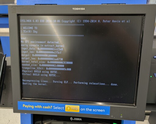 skiguy0123@lemmy.ca to Linux@lemmy.ml · 25 days agothe self checkout machines at Walmart need a reboot. syslinux 6.03lemmy.caimagemessage-square28linkfedilinkarrow-up1247arrow-down15