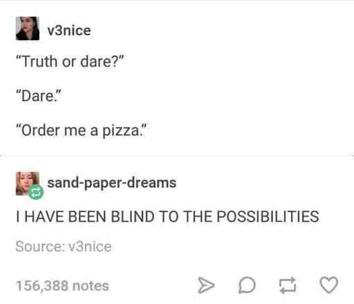 arrow-up1491arrow-down1imageDammit! Who wants to play truth or dare...completely coincidental....lemmy.mljankforlife@lemmy.ml to Microblog Memes@lemmy.worldEnglish · 2 months agomessage-square23linkfedilink