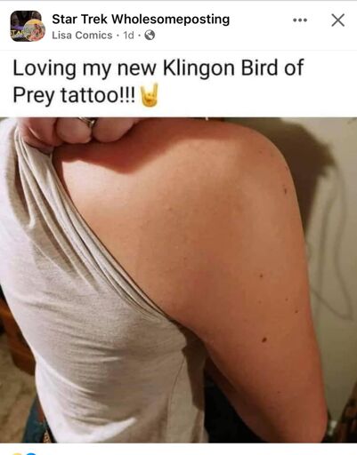 Sorry to have to tell you this, but the tattoo artist made a terrible mistake - that’s a Romulan warbird.