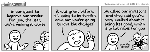 This is 100% accurate. Nobodys goal is to solve problemys or to even make things that acctualy works. It’s what if it kind of sort of work almost enought but we put as many abusing shit as we can get away with… Which is apparently all of them.