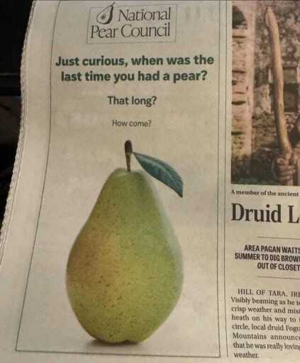 i did this a month ago, ate a pear and was like wow i havent eaten a pear in decades… just strange that you just dont come across pears that often.